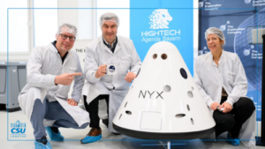 Das Startup The Exploration Company entwickelt wiederverwendbare Raumkapseln, die mit nachhaltigem Treibstoff betrieben werden. Vor dem zweiten Demoflug der Raumkapsel Nyx besuchten Ministerpräsident Dr. Markus Söder und Wissenschaftsminister Markus Blume das Raumfahrtunternehmen in Planegg. Die mitgebrachte Bavaria One-Tasse wird mit ins All fliegen.