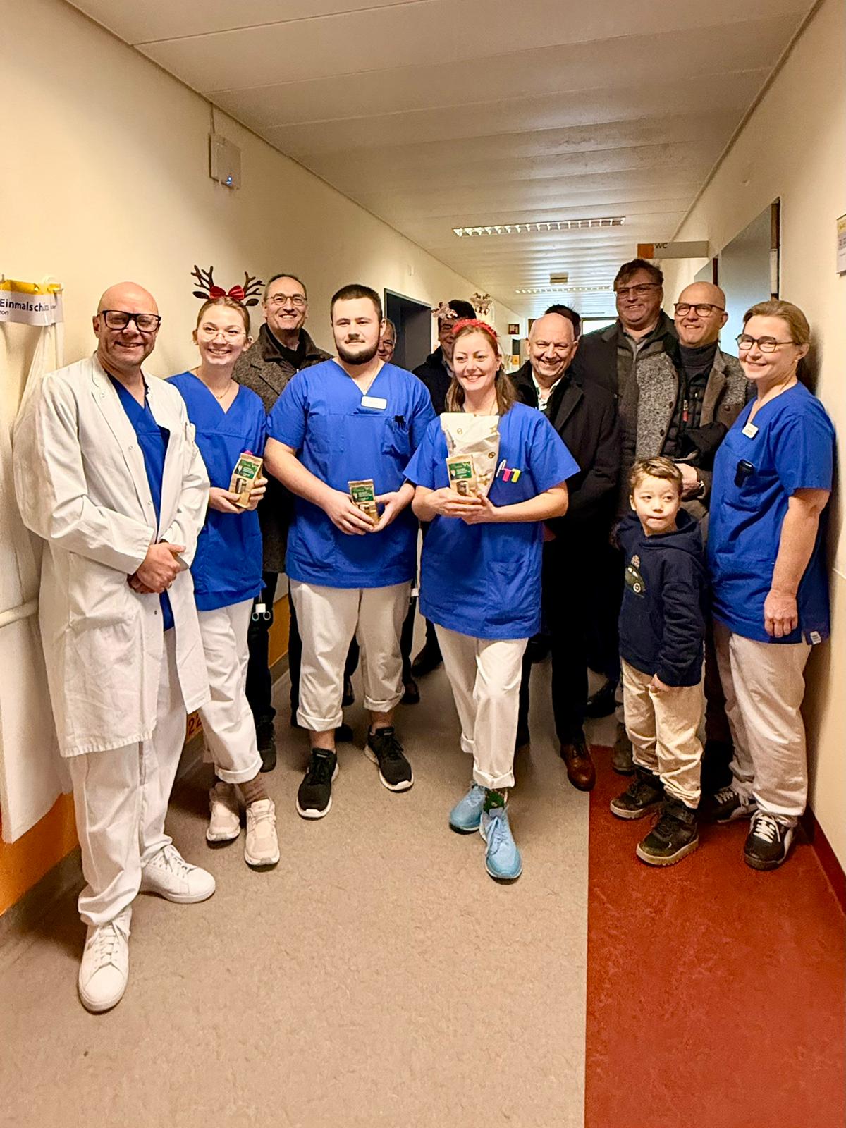 2 c – beim Verteilen von Wei­h­nachtsster­nen im Klinikum Inder­s­dorf mit Georg Roth,