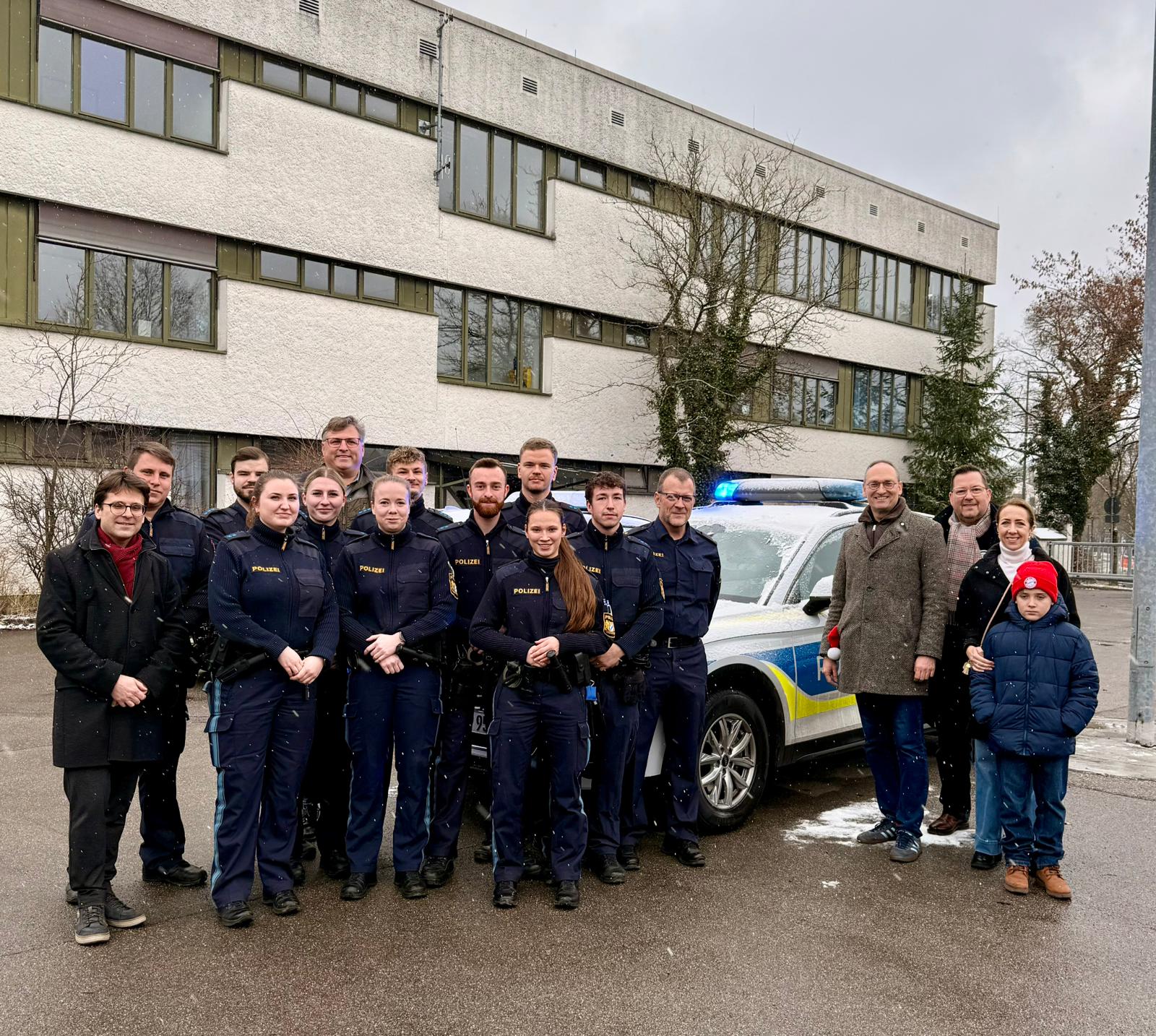 6 – auf dem Hof der Polizei­in­spek­tion Dachau –hof­fentlich wirk­lich zum let­zten Mal an der Dr.-Höfler-Straße, unter anderem mit dem stel­lvertre­tenden Inspek­tion­sleit­er Ste­fan Wall­ner — und